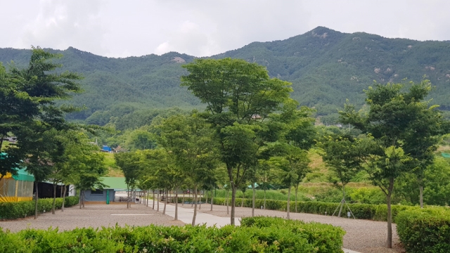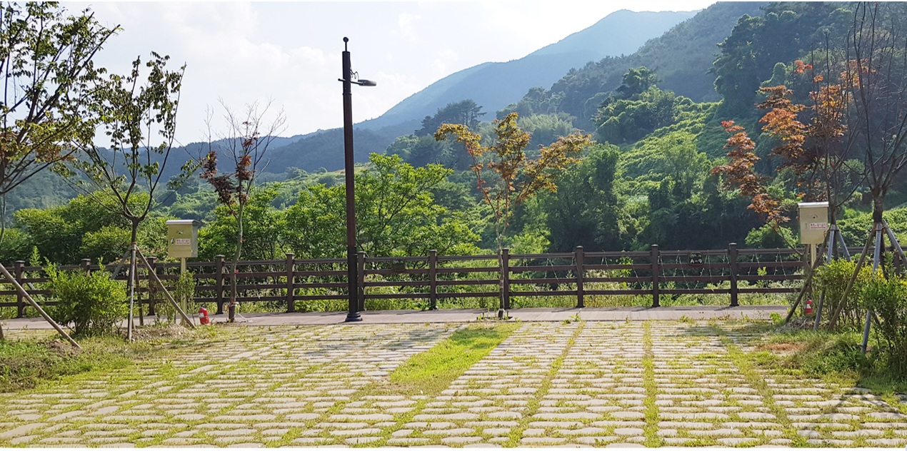 고개만 들어 앞을 보면 가야산이 보이고, 옆으로 돌면 계곡이 보이는 자연히 힐링이 되는 곳으로, 산책을 겸해 소리마실로 가는 다리를 건너면 대장경 테마파크 있는 곳부터 해인사까지 길이 연결이 되어 있습니다.