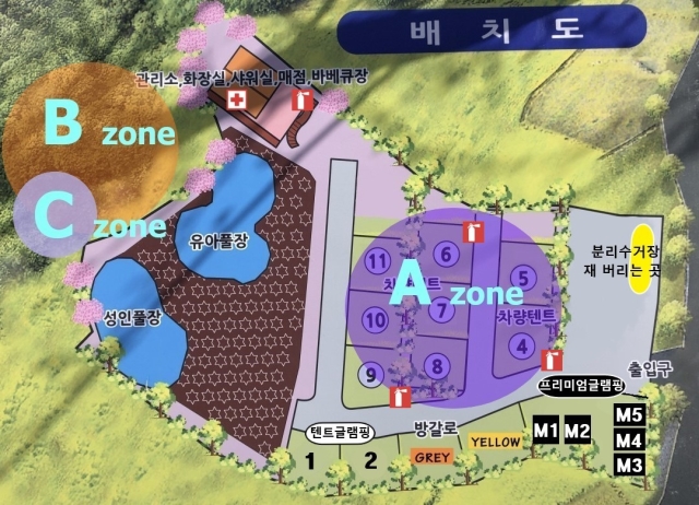 캠핑장은 조용하고 아기자기하며 미니 매점과 미니 도서관, 미니 커피숍 등 공간 활용을 잘 한 캠핑장입니다.