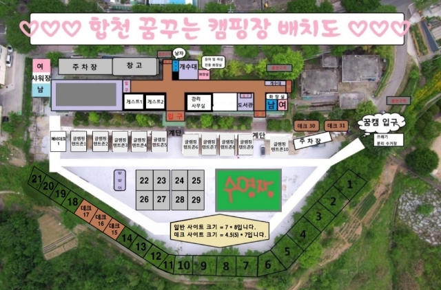 합천 지역은 특히 물놀이 시설을 잘 갖춘 캠핑장이 많아서 여름 캠핑을 즐기기에 더 없이 좋은 지역인 것 같습니다.