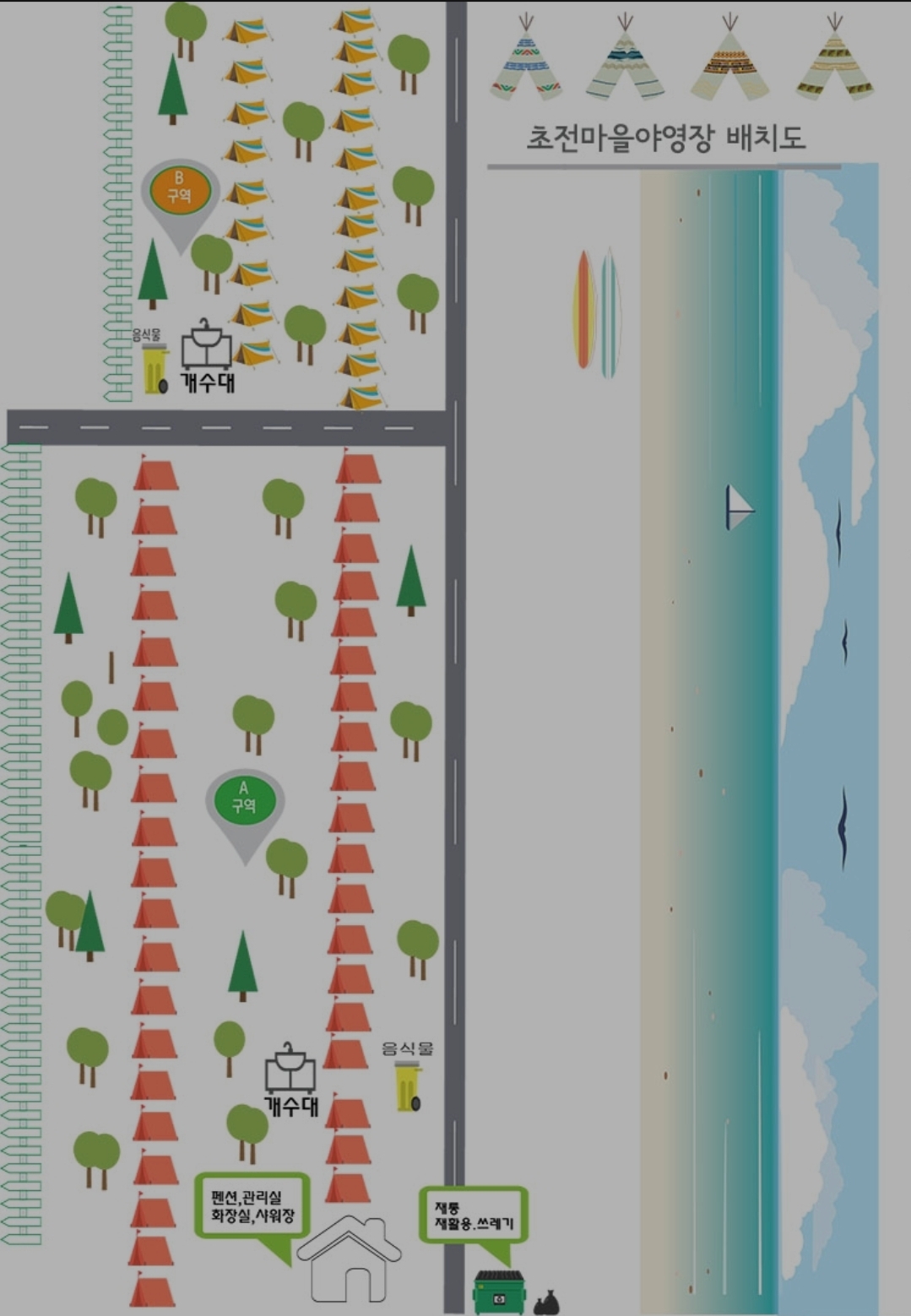 야영장도 많이 있어 해수욕장 바로 앞에서