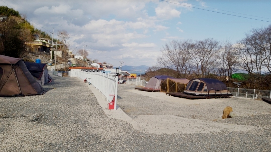 명도그 캠핑장은 남해도의 맨 위쪽인 설천면