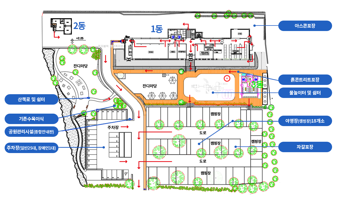 물놀이장, 트램펄린등을 갖추고 있으며 인근에