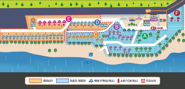 캠프627캠핑장은 뒤쪽으로 지리산 웅석봉으로 에워싸여있고, 앞으로는 경호강이 흐르는 주변경관이 뛰어난 곳에 자리하여 아름다운 경치와 맑은공기를 즐길 수 있는 캠핑장 입니다.