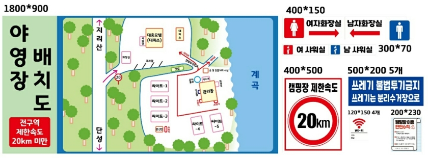 신설캠핑장으로서 편의시설의 깨끗함은 물론 샤워장 및 개수대의 온수사용, 사이트 바닥재는 자연석 강자갈을 사용하여, 파쇄석 이용시 먼지 발생 및 불편함을 최소화 하였습니다.