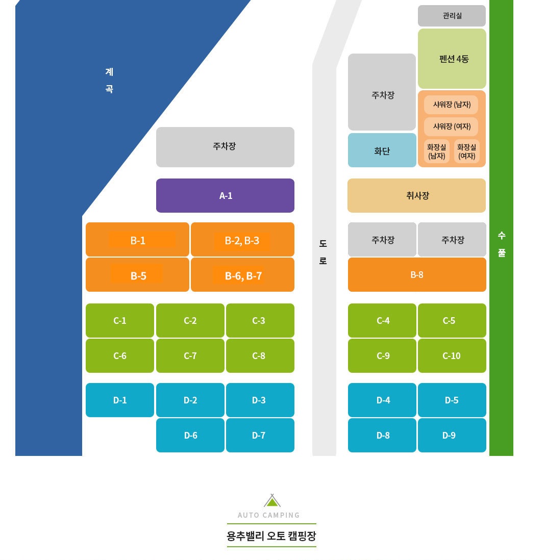 3. 주소 : 경남 함양군 안의면 용추계곡로 493 (상원리, 용추오토캠핑장 관리사무소)