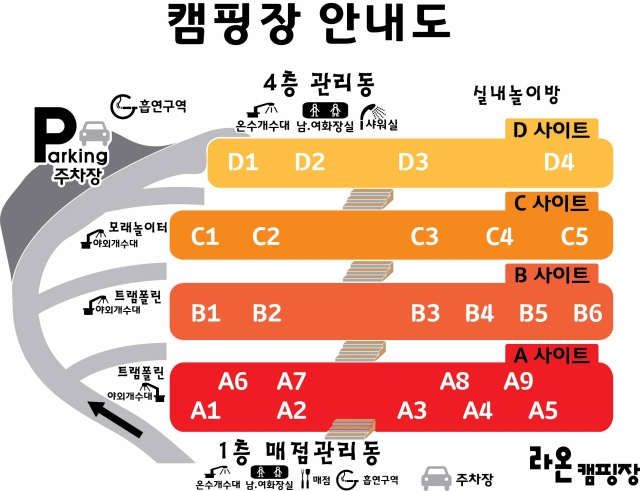 -1캠핑장과 2부속캠핑장은 화장실,개수대등 편의시설동과의 거리가 멀고 오르막길이라 사용에 불편함이 있을수 있으니 예약전 참고해주세요. (임산부와 노약자는 특히 유의바랍니다.) -예약