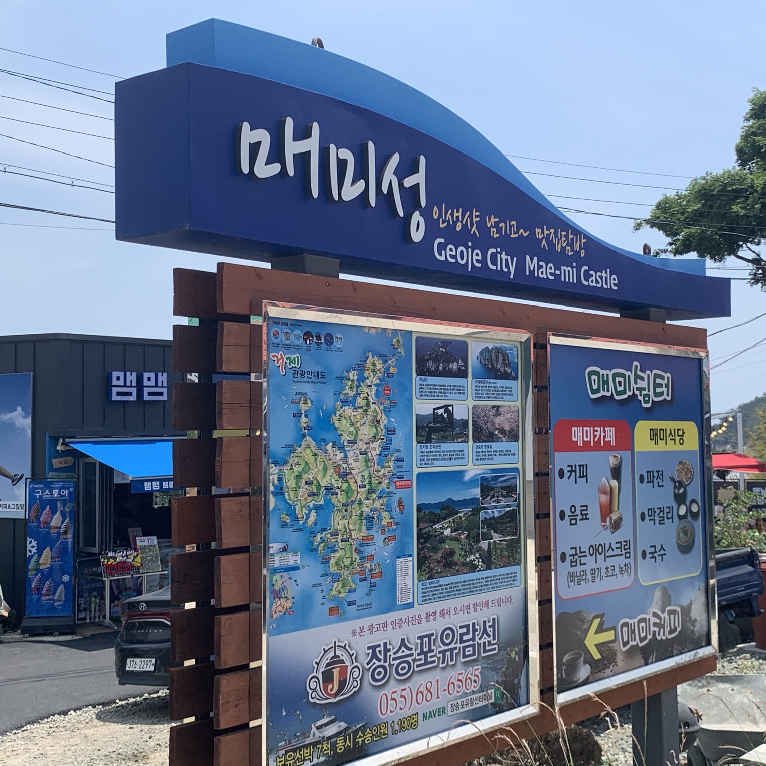 매미성 여행 후 카페에서 경치를 보면서 커피 한잔 즐기기에도 좋습니다.
