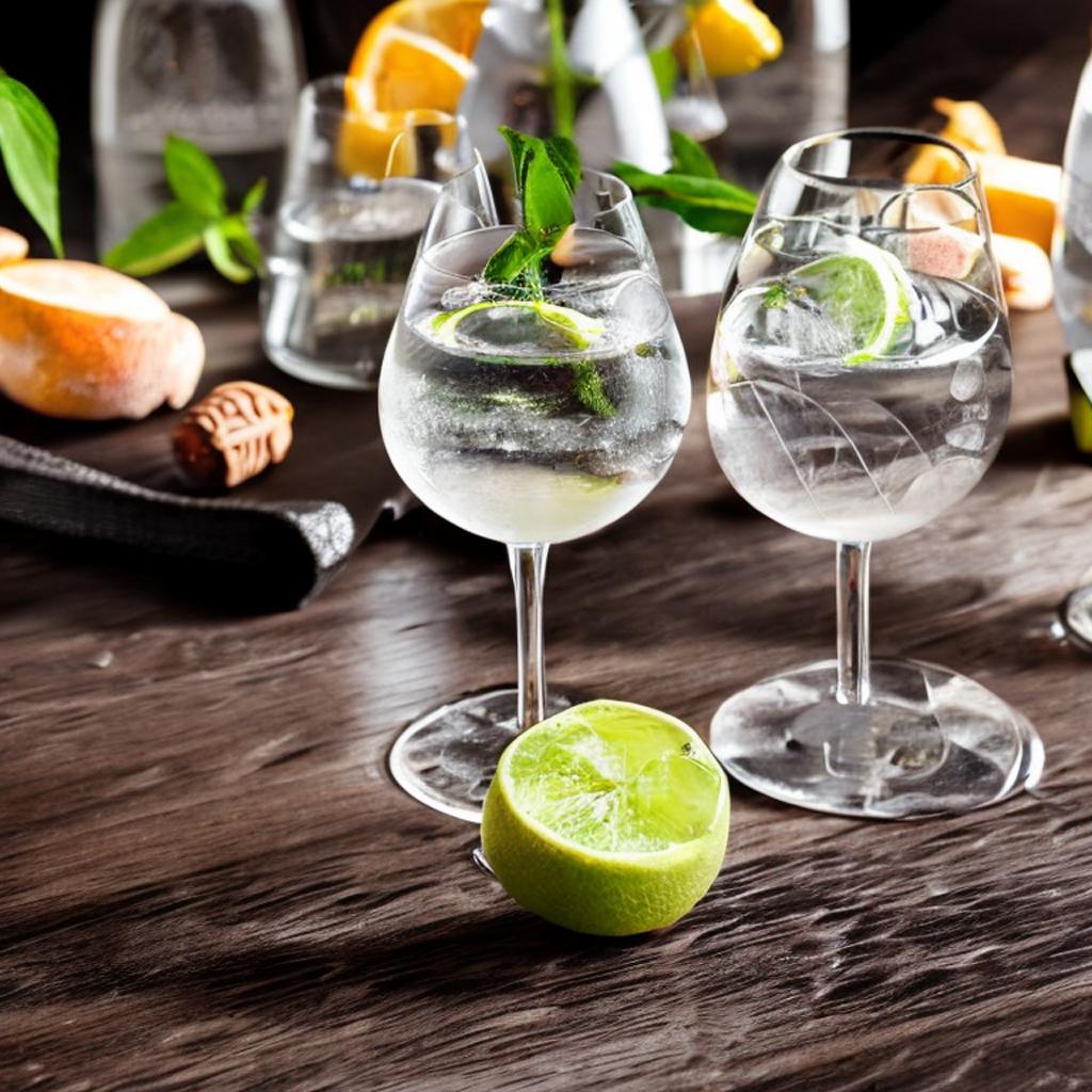 얼음을 채운 잔에 진을 따르고 토닉워터를